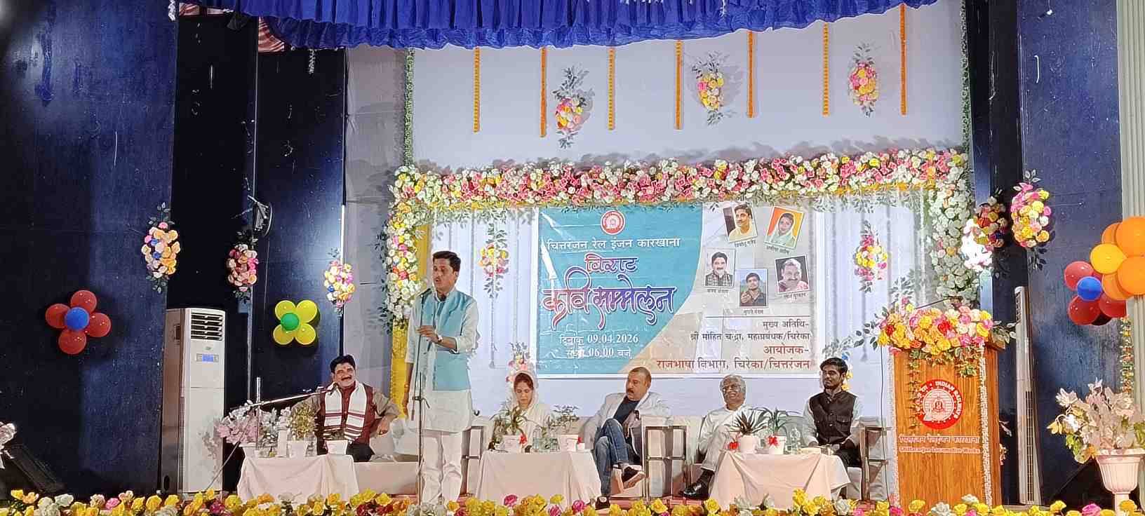 तहलका न्यूज 24 संवाददाता काजल राय चौधरी चित्तरंजन। रेलनगरी चित्तरंजन का रंजन सिनेमा हॉल गुरुवार की शाम एक भव्य साहित्यिक आयोजन का साक्षी बना, जब चिरेका के राजभाषा विभाग की ओर से विराट कवि सम्मेलन का आयोजन किया गया। इस अवसर पर चिरेका के महाप्रबंधक मोहित चंद्रा मुख्य अतिथि के रूप में उपस्थित रहे और दीप प्रज्वलित कर कार्यक्रम का विधिवत उद्घाटन किया।कार्यक्रम की शुरुआत अत्यंत भावनात्मक माहौल में हुई। जैसे ही वंदे मातरम की धुन पूरे सभागार में गूंजी, उपस्थित सभी लोग सम्मान में खड़े हो गए और सामूहिक रूप से गीत गाकर देशभक्ति का अनूठा संदेश दिया। इसके बाद अतिथियों और आमंत्रित कवियों का पुष्पगुच्छ, पौधा एवं अंगवस्त्र देकर सम्मानित किया गया।कवि सम्मेलन में देश के विभिन्न हिस्सों से आए प्रतिष्ठित कवियों ने अपनी-अपनी रचनाओं से श्रोताओं को मंत्रमुग्ध कर दिया। शबाना अदीब की संवेदनशील और प्रभावशाली कविताओं ने जहां भावनाओं को छू लिया, वहीं प्रियांशु गजेंद्र ने समसामयिक विषयों पर व्यंग्यात्मक अंदाज में प्रस्तुति देकर खूब तालियां बटोरीं। अजय अंजाम और मुरारी मंडल ने समाज की ज्वलंत समस्याओं को अपने शब्दों में पिरोकर दर्शकों को सोचने पर मजबूर किया।हास्य-व्यंग्य के रंग भी मंच पर खूब बिखरे। रमेश मुस्कान की चुटीली और मनोरंजक कविताओं ने माहौल को हल्का-फुल्का और जीवंत बनाए रखा, जिससे श्रोता ठहाकों से गूंज उठे। कार्यक्रम का एक विशेष आकर्षण यह भी रहा कि चिरेका के पीसीएमएम ए.के. मेश्राम ने भी मंच संभालते हुए अपनी रचनाएं प्रस्तुत कीं, जिसे श्रोताओं ने खूब सराहा।कवियों की प्रस्तुतियों का सिलसिला देर रात तक जारी रहा और हर कविता के साथ सभागार तालियों की गड़गड़ाहट से गूंजता रहा। बड़ी संख्या में उपस्थित साहित्य प्रेमियों, रेलवे अधिकारियों और कर्मचारियों ने इस आयोजन का भरपूर आनंद उठाया।यह आयोजन न केवल हिंदी भाषा और साहित्य के प्रति लोगों की रुचि को प्रोत्साहित करने में सफल रहा, बल्कि चित्तरंजन में सांस्कृतिक गतिविधियों को नई दिशा और ऊर्जा भी प्रदान कर गया।